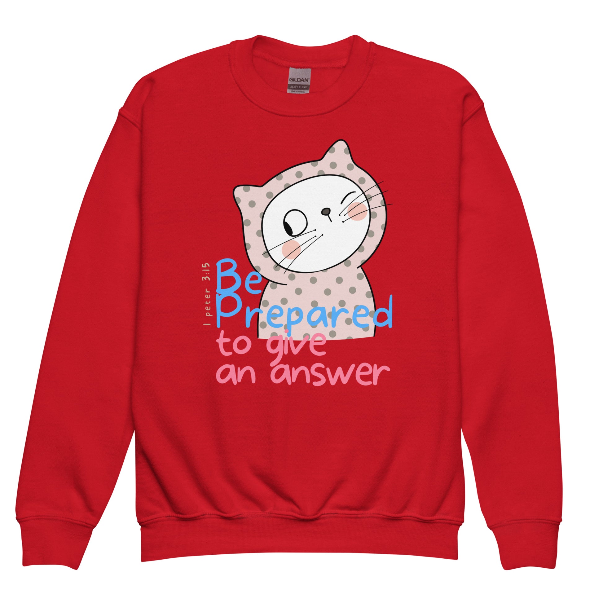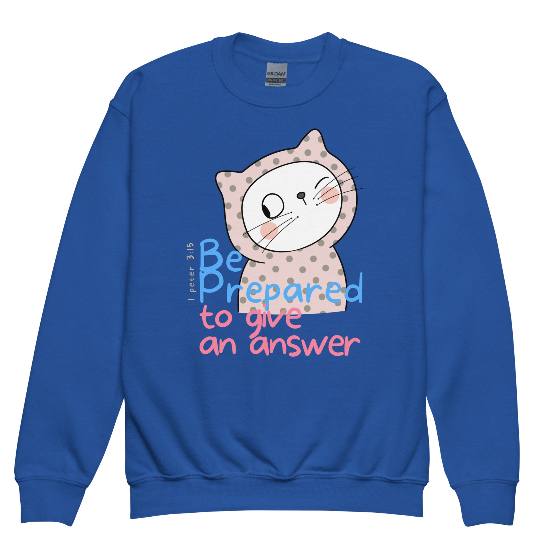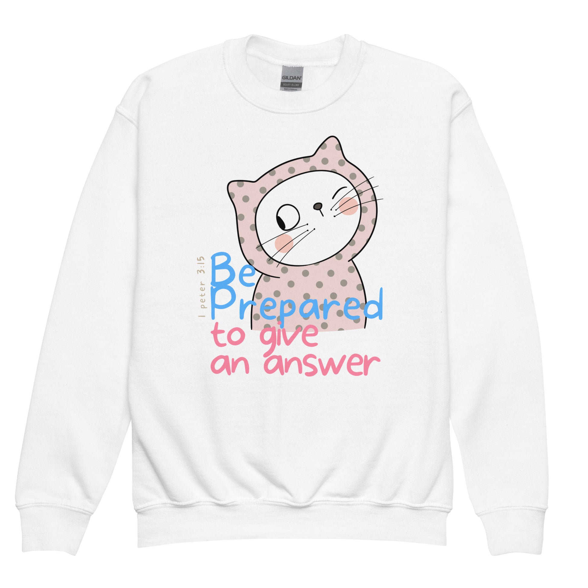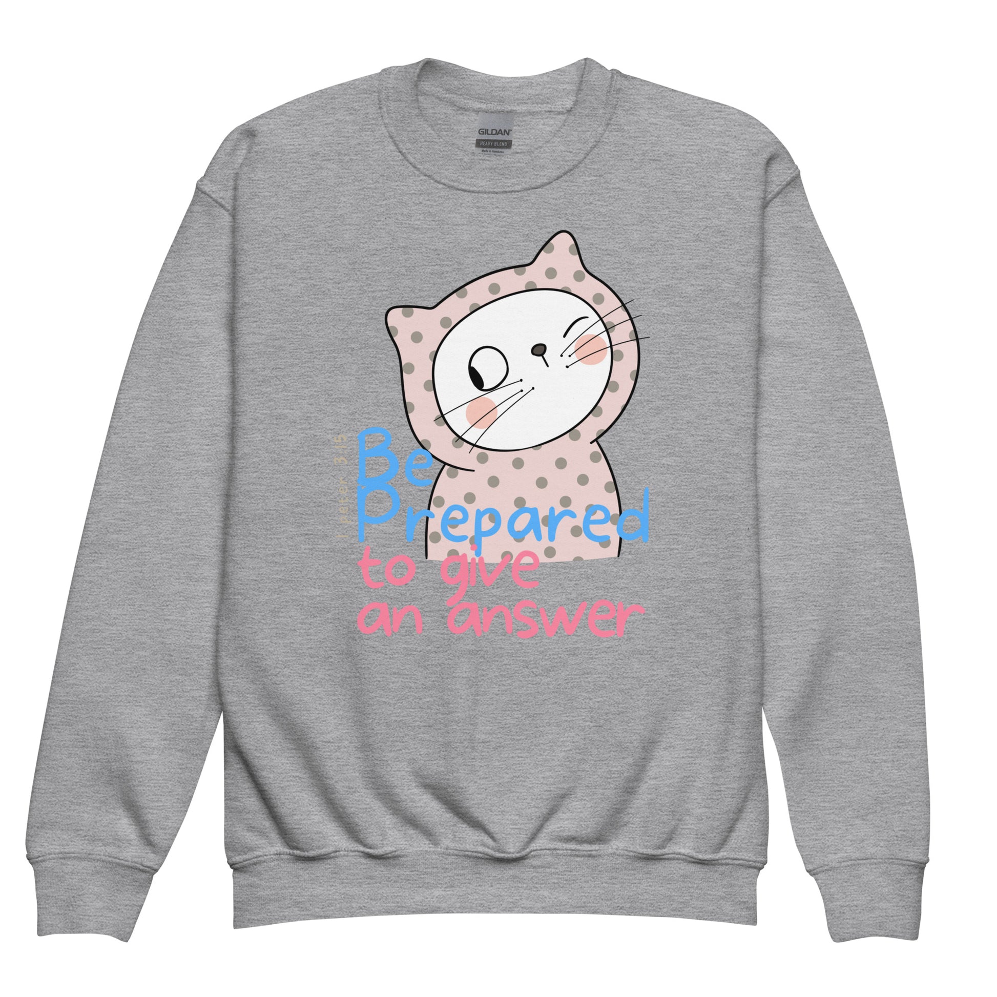 Be prepared to give an answer, 1 Peter 3:15, Youth crewneck sweatshirt